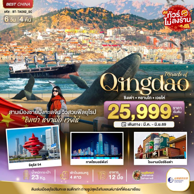 มหัศจรรย์...จี่หนาน จือปั๋ว ชิงเต่า 6 วัน 5 คืน 19,999 บาท