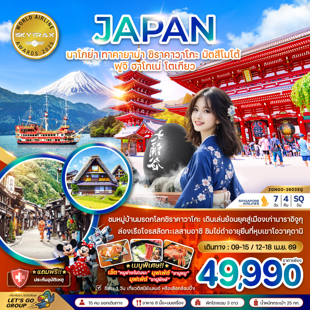 วันที่ออกเดินทาง 09 - 15 เม.ย. 69