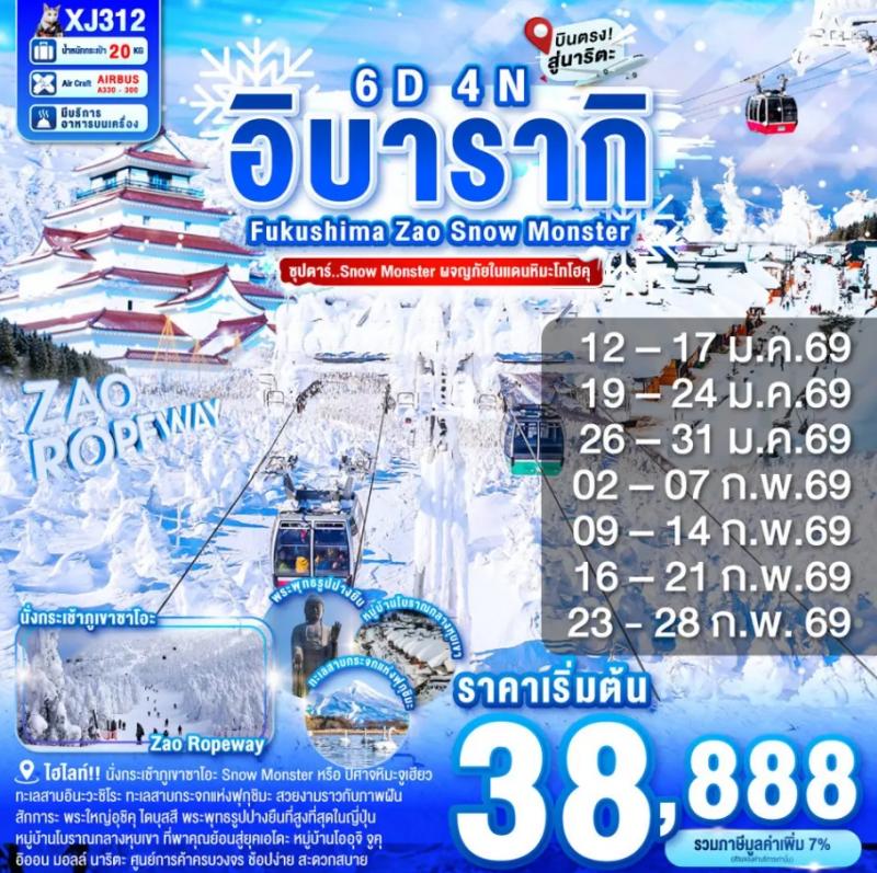 IBARAKI FUKUSHIMA ZAO SNOW MONSTER 6D 4N BY XJ --JAN - FEB'26 --- ซุปตาร์...Snow Monster ผจญภัยในแดนหิมะโทโฮคุ