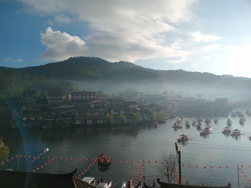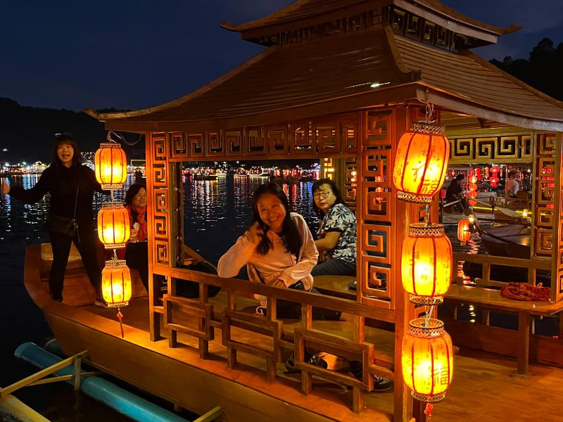 บริการอาหารค่ำ(5) ดื่มด่ำบรรยากาศ และอาหารแบบจีนยูนนาน โดยเฉพาะ ขาหมูหมั่นโถว และ ชาจีนร้อนๆ นำท่าน ล่องเรือไม้โบราณ สไตล์จีน ชมบรรยากาศยามค่ำคืนของบ้านรักไทย พร้อมชมวิว 360 องศา จากกลางทะเสสาบให้ท่านได้เห็นรอบหมู่บ้านรักไทยที่ประดับไฟไว้อย่างสวยงาม ให้ท่านได้พักผ่อนชมวิว ถ่ายภาพได้ตามอัธยาศัย (ค่าเรือรวมอยู่ในค่าทัวร์แล้ว) |